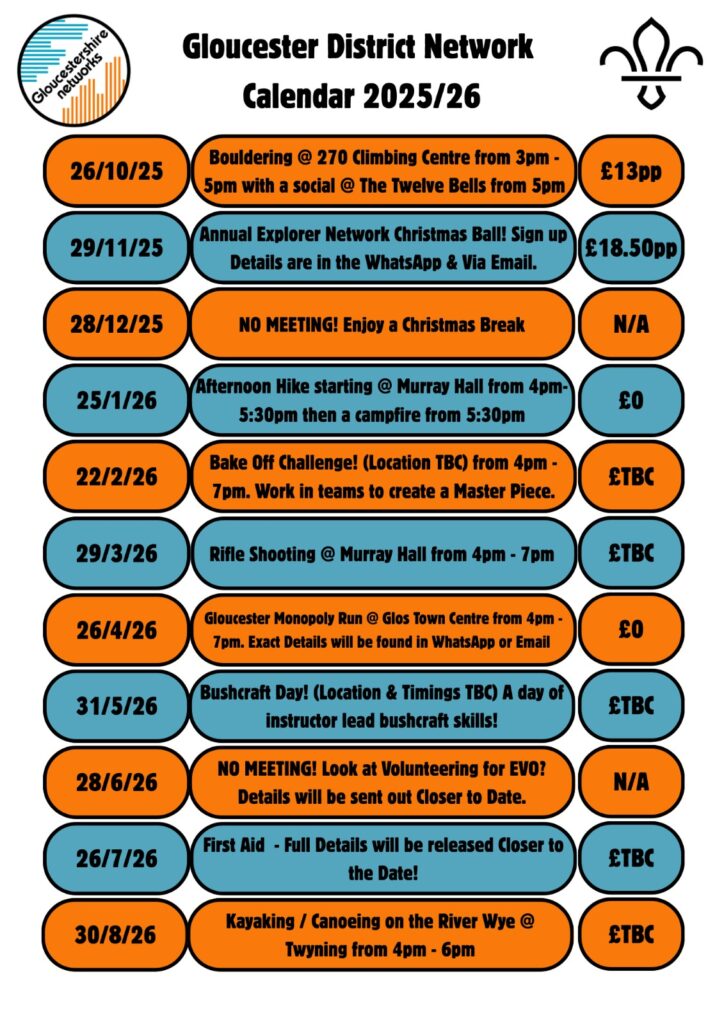 Gloucester Scout Network Scout Network is the section for 18-25 year olds who want to take part in Scouting activities themselves either as well as, or instead of, leadership with other sections. Network is member-led, so they do whatever the members want to do! Gloucestershire Network offer a variety of local, county, national and international activities, as well as the opportunity to complete the Duke of Edinburgh’s, Chief Scout’s and King’s Scout Awards. for joining information contact Will dsnc@gloscouts.org.uk or click this link to fill in our joining form!